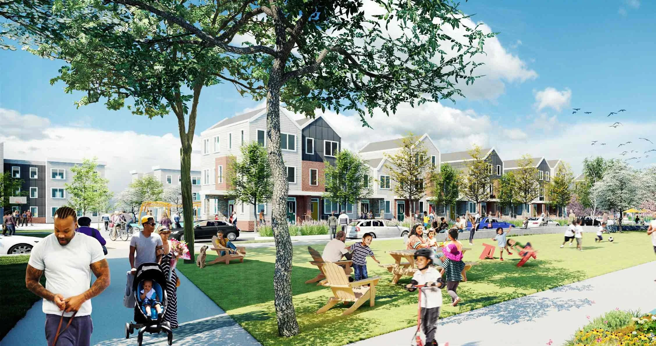 A representation of the new housing and community amenities planned for Bartram Village